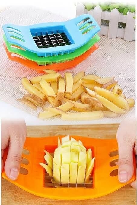 PRATİK PATATES KESME ALETİPratik patates kesme aleti, hızlı ve düzenli patates kesimi için tasarlanmış bir mutfak aracıdır. İki taraflı tutma kulbu, güvenli ve stabil bir tutuş sağlar, böylece kesim işlemi sırasında kolayca kontrol edilebilir.Alet, kızartmaya uygun patates şeklinde kesim yapma özelliğiyle pratik bir kullanım sunar. Kesme bıçakları, eşit kalınlıkta dilimler elde etmek için optimize edilmiştir. Bu sayede patatesleri hızlıca hazırlayabilir ve homojen şekilde kesim yapabilirsiniz.Dayanıklı malzeme yapısı, uzun ömürlü kullanım sağlar. Kolay temizlenebilir özelliği, mutfak işlerini daha pratik hale getirir. Pratik patates kesme aleti, kızartma veya diğer tarifleriniz için hızlı ve düzenli kesim yapmak için ideal bir yardımcıdır.Paket İçeriği1 adet pratik patates kesme aleti