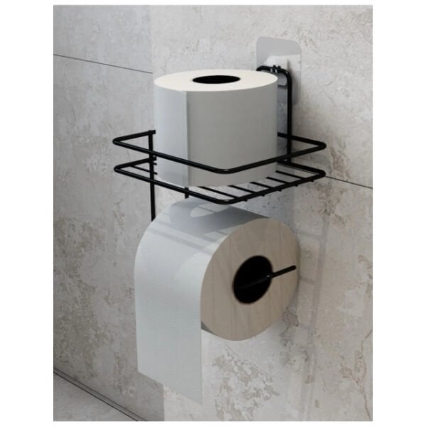 Pratik Yapışkanlı Metal Tuvalet Kağıdı Tutucu, hem kullanışlı hem de modern bir tasarıma sahip olup, banyo düzeninizi pratik şekilde sağlamanıza yardımcı olur. Alt bölümde tuvalet kağıdı tutucu, üst bölümde ise ekstra rulo veya temizlik malzemeleri için raf bulunur. Yapışkanlı askı ile kolayca duvara sabitlenebilir, matkap kullanmadan güçlü yapıştırıcı ile montaj yapılır, duvara zarar vermez. Paslanmaz metal gövde sayesinde uzun ömürlü kullanım sağlar ve her banyo dekorasyonuna uyum gösteren şık bir görünüm sunar. Özellikle küçük banyolarda düzen sağlamak ve alan kazanmak için idealdir. Banyo veya tuvaletlerde kullanılabilecek bu ürün, otel, ofis ve ev gibi çeşitli yaşam alanlarında da pratik bir depolama çözümü sunar.