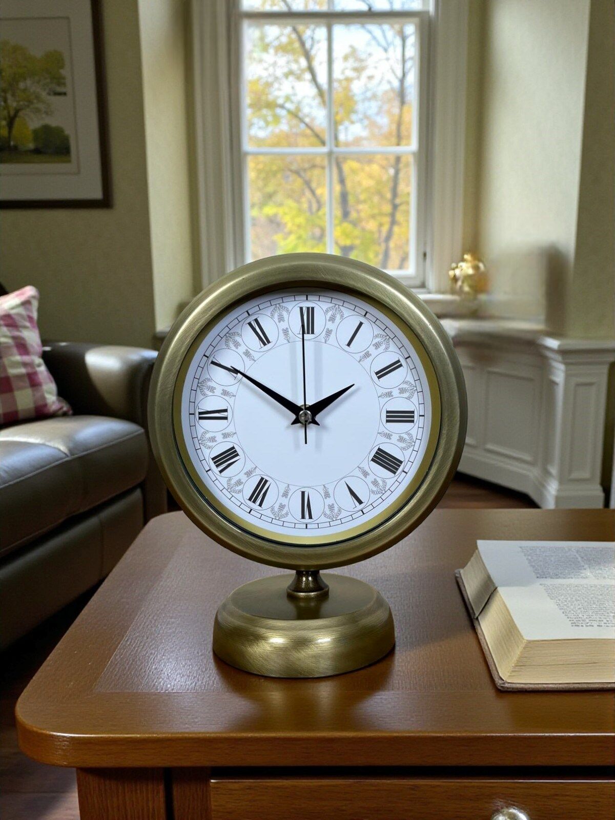 Klasik çizgileri modern detaylarla birleştiren bu eskitme gold masa saati, bulunduğu ortama sofistike bir hava katar. Beyaz zemin üzerinde yer alan desenli kadranı ve Roma rakamlarıyla dikkat çeken tasarımı; salon, çalışma odası, ofis, konsol üstü ve vitrinler için kusursuz bir tamamlayıcıdır. 25 x 20 cm ölçüsü sayesinde hem yer kaplamaz hem de dekorasyonda güçlü bir duruş sergiler.