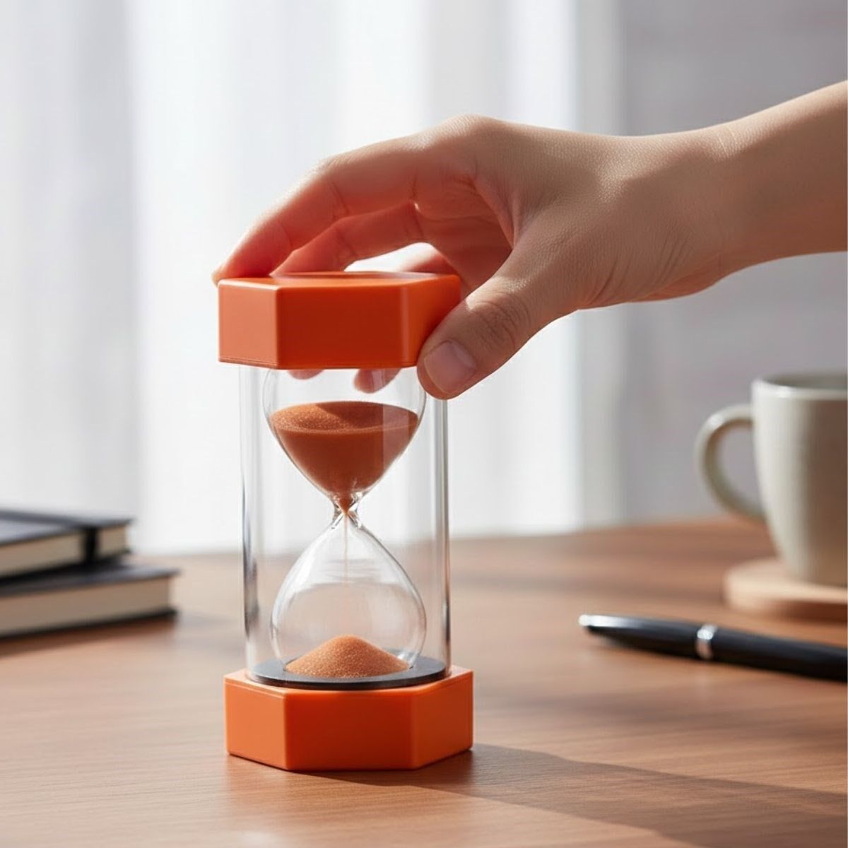 Renkli kum yapısı, cam hazne içerisinde akarken görsel bir estetik oluşturur. Her ortamda dikkat çeken tasarımı sayesinde ofis, çalışma masası ve ev dekorasyonuna modern bir hava katar.