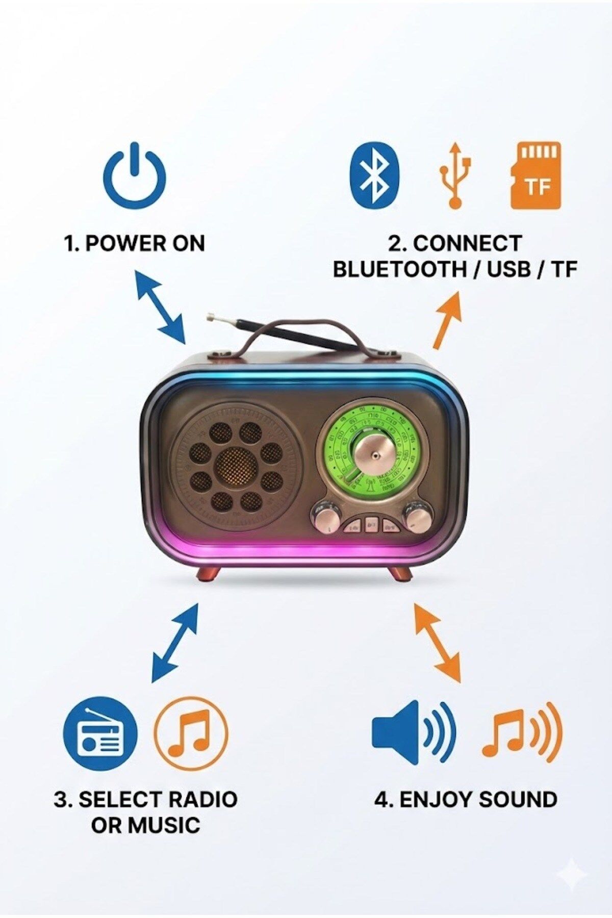 Retro Bluetooth Radyo Hoparlör USB TF Kart AUX FM Taşınabilir Nostaljik Tasarım