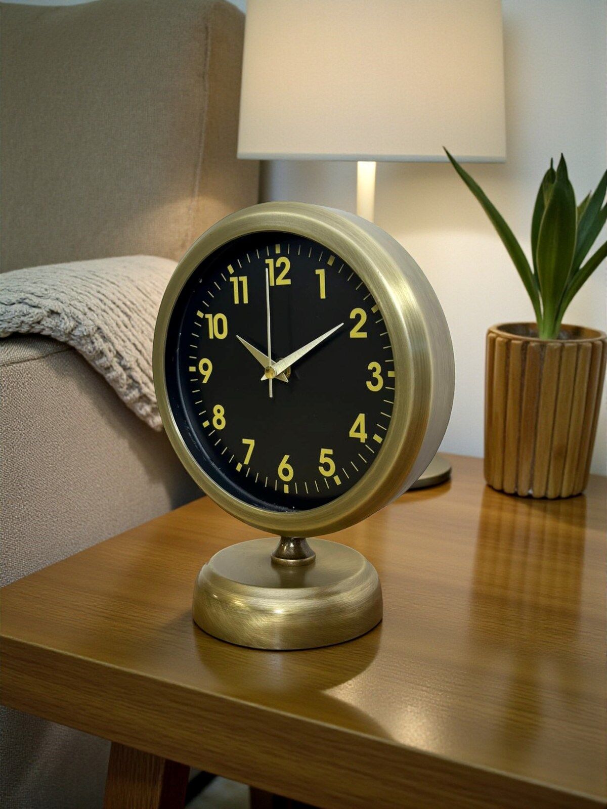 Klasik çizgileri modern detaylarla birleştiren bu eskitme gold masa saati, bulunduğu ortama sofistike bir hava katar. Siyah zemin üzerinde yer alan gold rakamlarıyla dikkat çeken tasarımı; salon, çalışma odası, ofis, konsol üstü ve vitrinler için kusursuz bir tamamlayıcıdır. 25 x 20 cm ölçüsü sayesinde hem yer kaplamaz hem de dekorasyonda güçlü bir duruş sergiler.