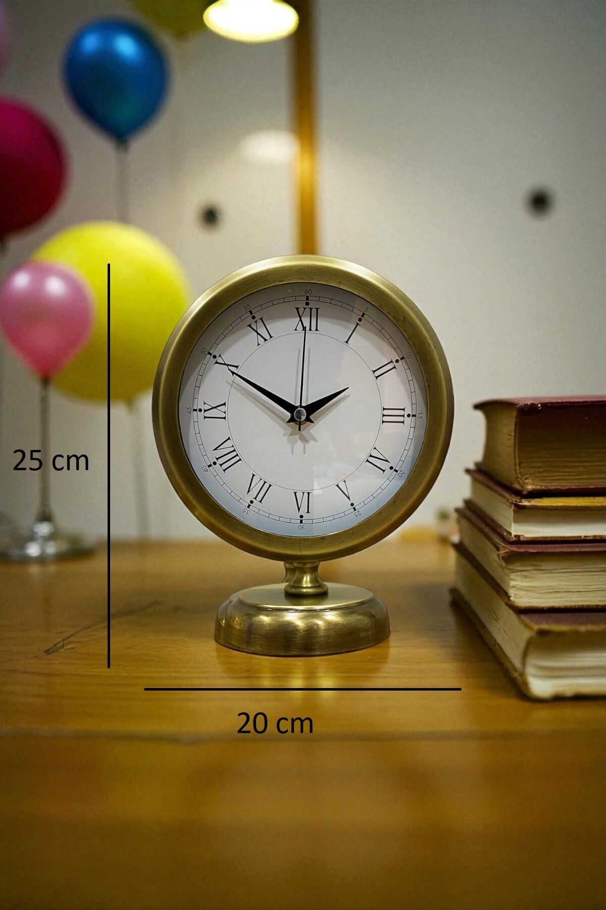 25 x 20 cm ölçüsü sayesinde masa, komodin, konsol, kitaplık ve vitrin üzerinde ideal bir boyuta sahiptir. Dengeli tabanı sayesinde sağlam durur ve bulunduğu alanda şık bir dekoratif obje olarak öne çıkar. Roma rakamları, saate klasik ve sofistike bir hava katar.