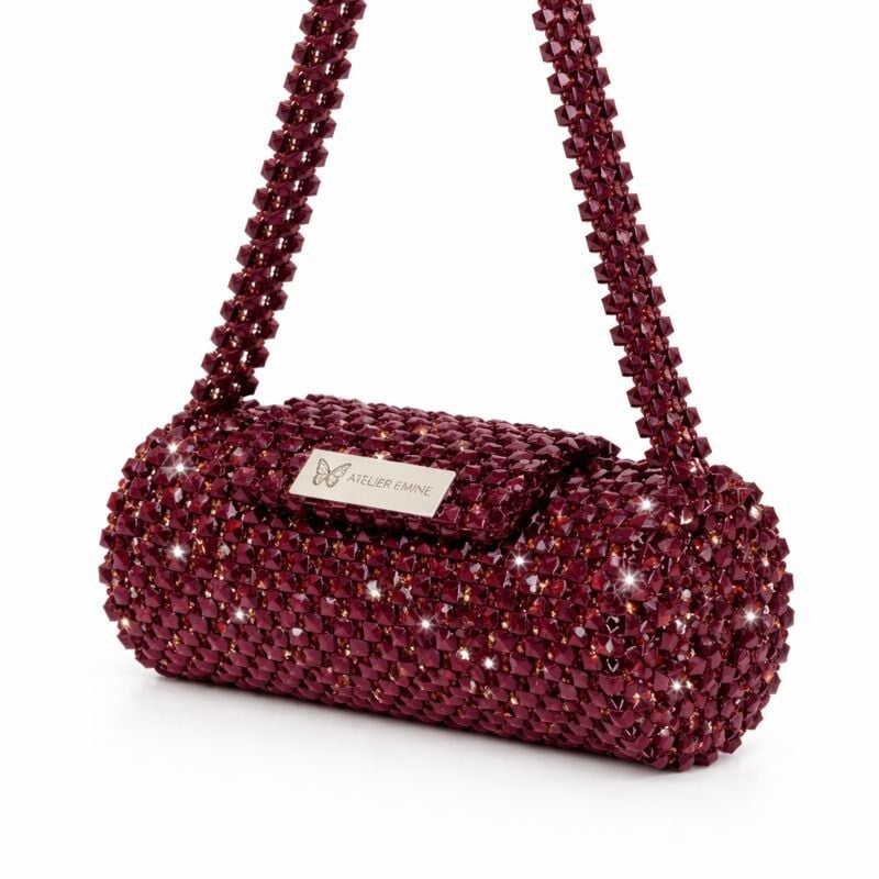 Atelier Emine’in Crystal Gelato Couture serisine ait Ricotta Rubino, 8 mm optik sınıfı kristal boncukların yüksek dayanımlı misina ile örülmesiyle tamamen el işçiliğiyle üretilmiş, zamansız ve rafine bir mini çanta tasarımıdır.