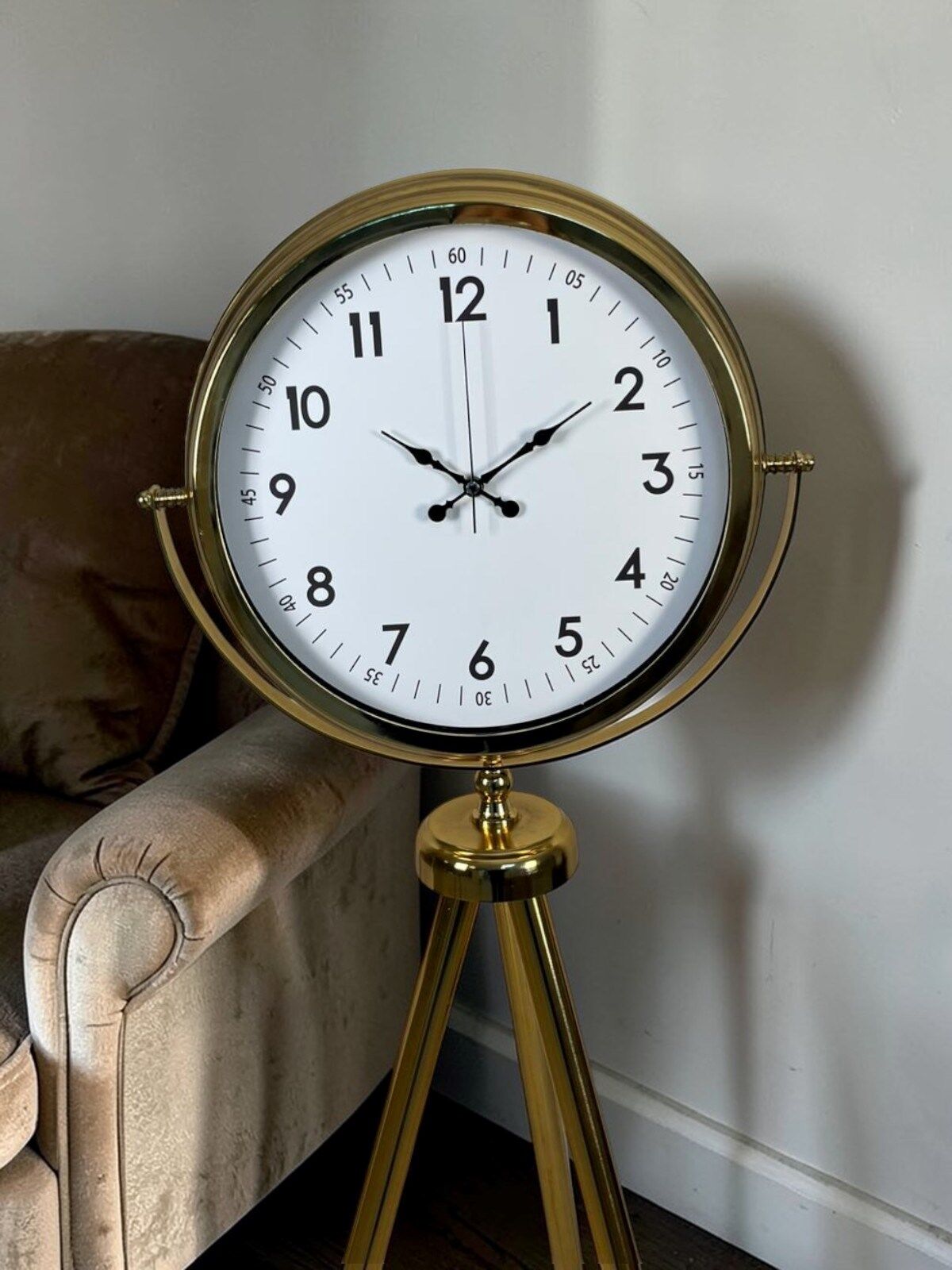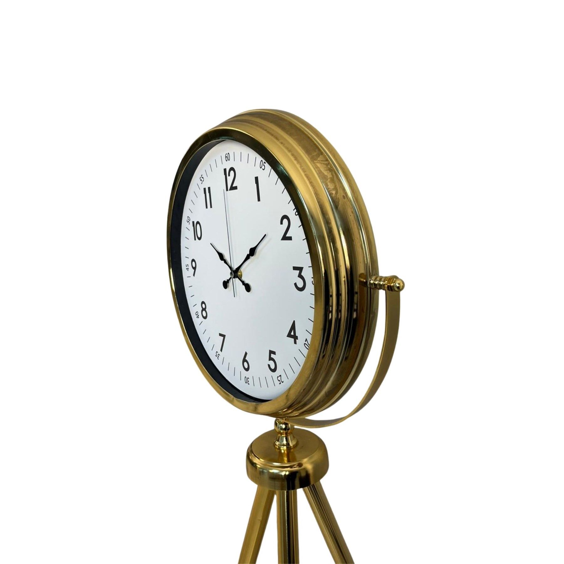 Şık ve modern tasarımıyla öne çıkan Gold Tripod Ayaklı Dekoratif Salon Saati, yaşam alanlarınıza zarif bir dokunuş kazandırır. İnce ve dengeli tripod ayak yapısı ile hem dekoratif hem de fonksiyonel bir kullanım sunar. Gold metal gövdesi sayesinde salon, ofis, otel lobisi ve çalışma alanlarında dikkat çekici bir dekor ürünü olarak kullanılabilir.