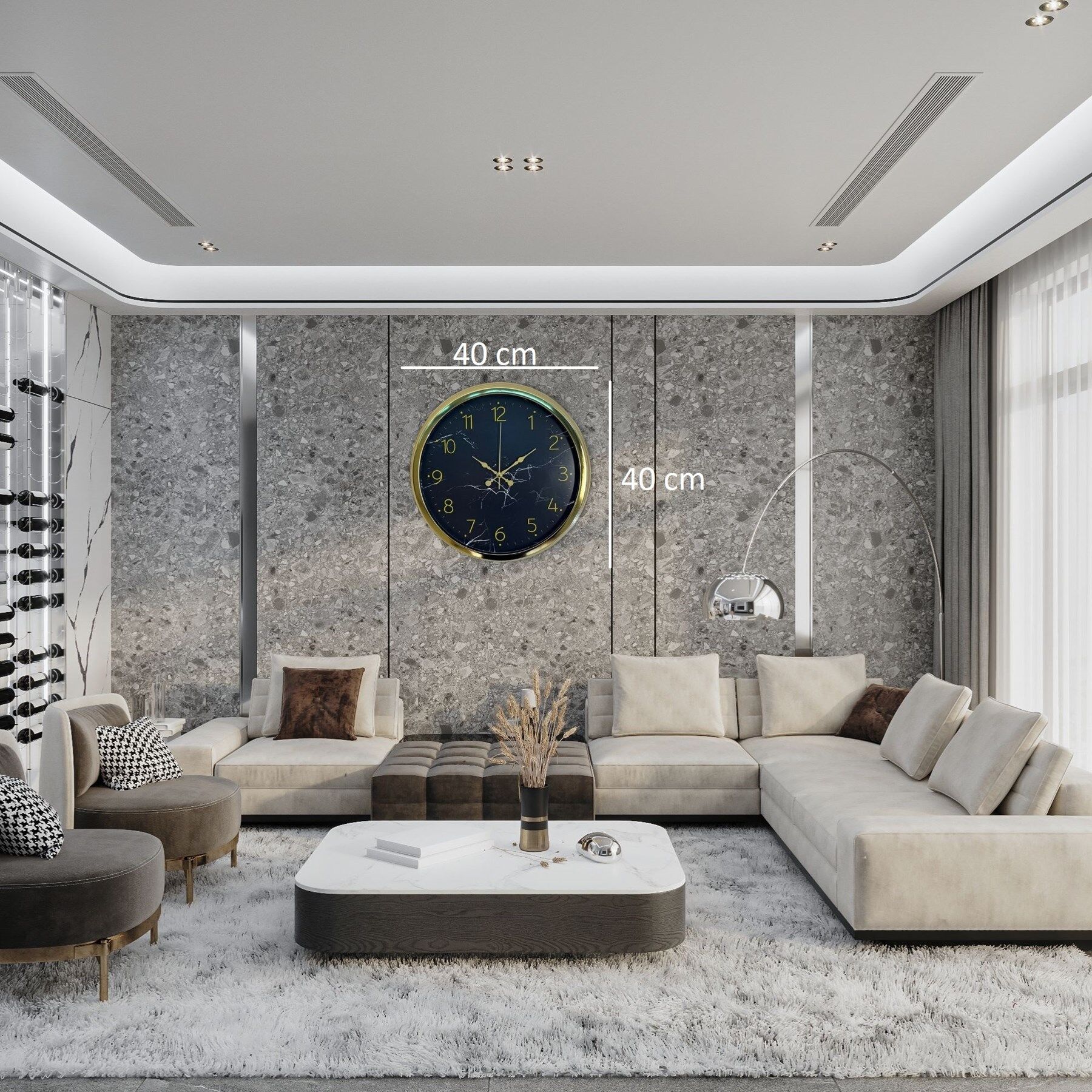 Royal Marble Gold 40 Cm Metal Duvar Saati