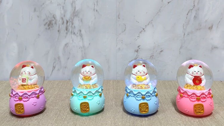 1 adet Şans Kedisi Işıklı Kar Küresi
