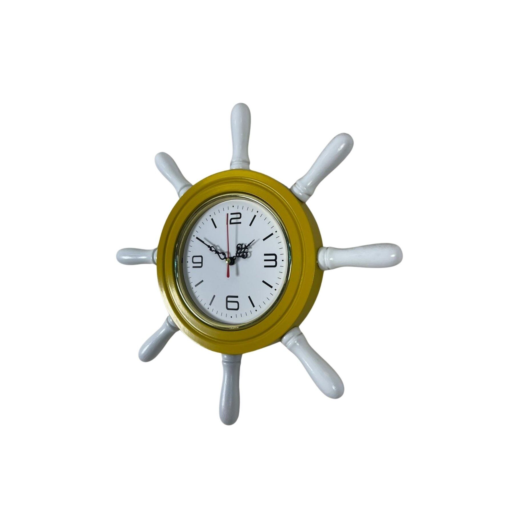 Denizcilik temalı dekorasyonlardan ilham alınarak tasarlanan 37 cm Sarı Dümen Duvar Saati, bulunduğu ortama canlı ve enerjik bir marin atmosfer kazandırır. Gemi dümeni formundaki özgün tasarımı sayesinde özellikle çocuk odası, genç odası, salon, yazlık ev ve deniz temalı dekorasyonlar için dikkat çekici bir duvar saatidir.