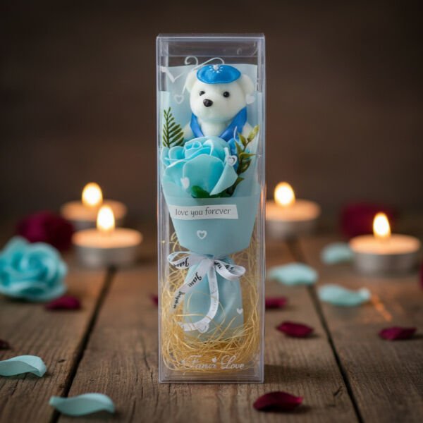 1 adet şeffaf kutulu ayıcıklı gül buketi (renkler karışık gönderilir)