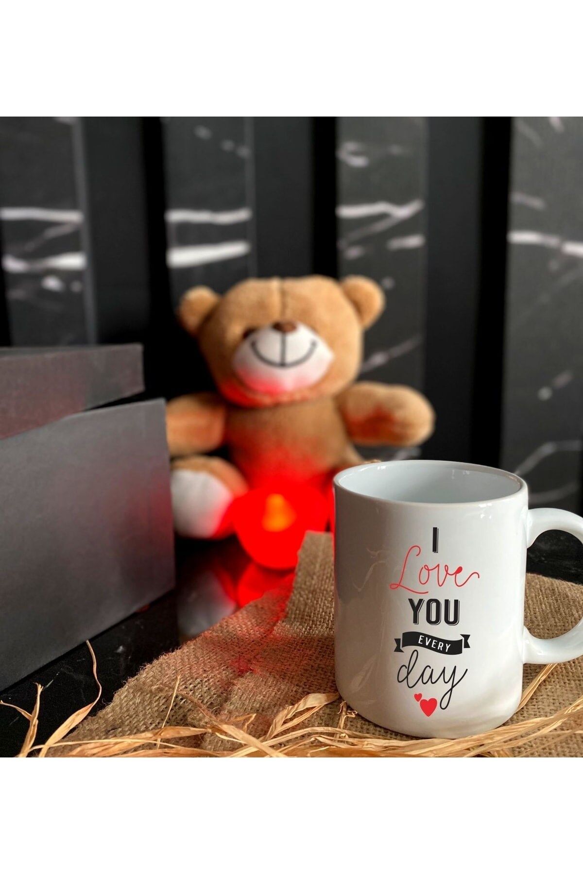Set içerisinde ; 1 adet Ayıcık, 1 adet Işıklı Kalp, 1 adet Baskılı Kupa Bardak bulunmaktadır.