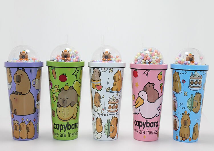 Sevimli Kapibara Pipetli Boncuklu Termos & Suluk