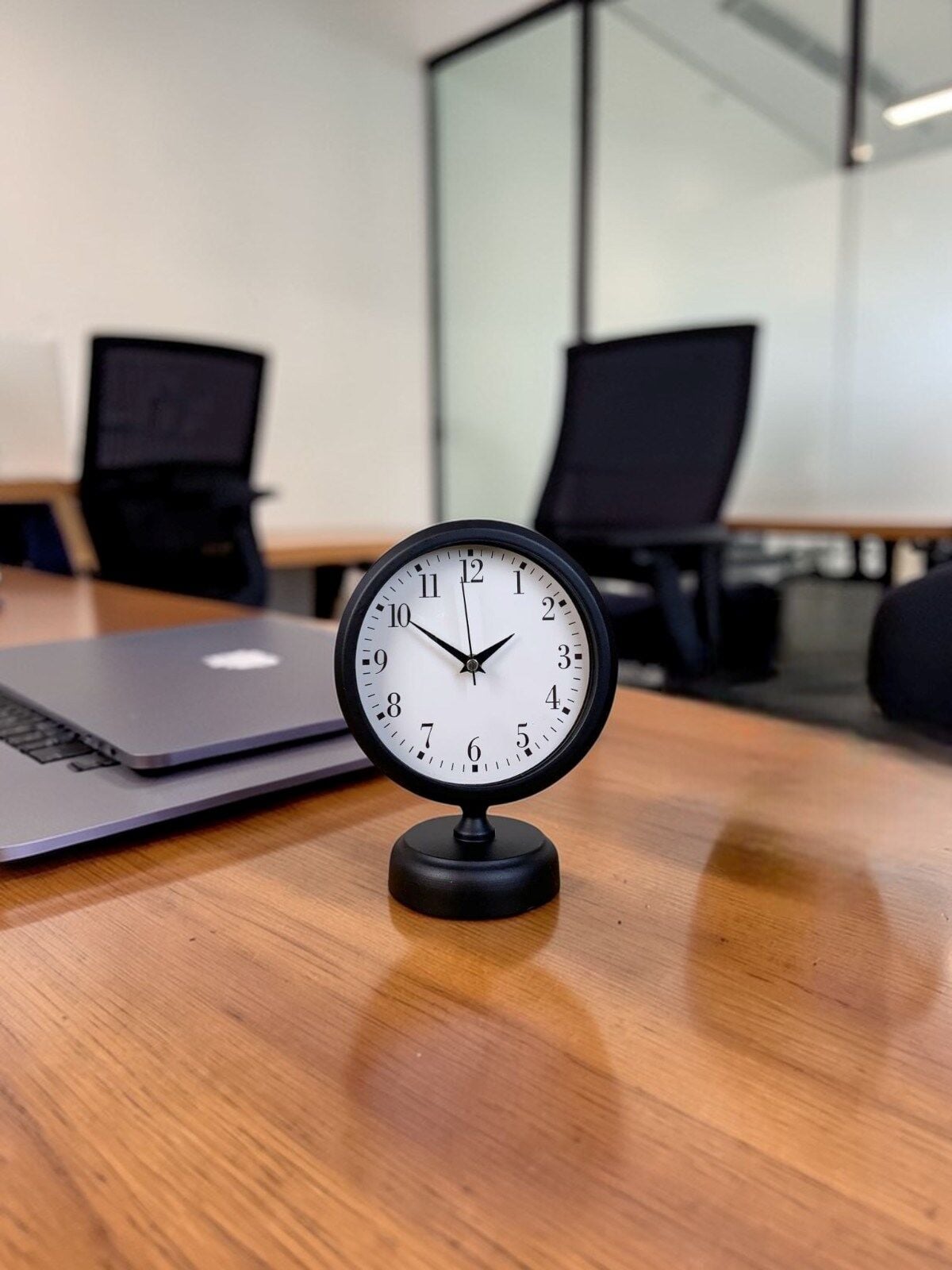 Modern ve sade tasarımıyla her ortama kolayca uyum sağlayan bu 25 x 20 cm masa saati, gerçek cam ön yüzeyi ve kaliteli gövde yapısıyla hem dayanıklı hem de şık bir kullanım sunar. Sessiz çalışan mekanizması sayesinde rahatsız edici tik-tak sesini ortadan kaldırarak ofiste, salonda, mutfakta veya yatak odasında huzurlu bir ortam oluşturur. Dekoratif standlı yapısı sayesinde masalarda, raflarda ve vitrinlerde estetik bir duruş sergiler.