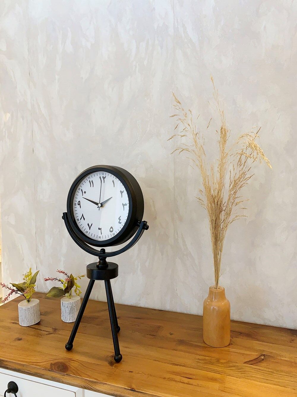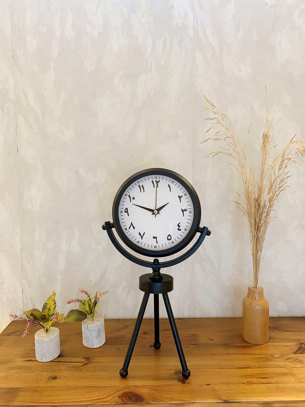 Siyah Metal Mini Tripod Farsça Masa Saati 45×26 cm