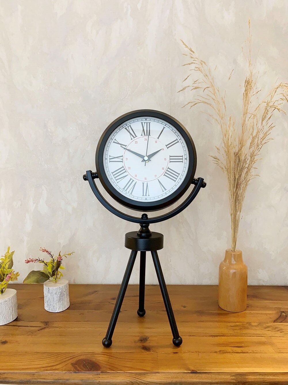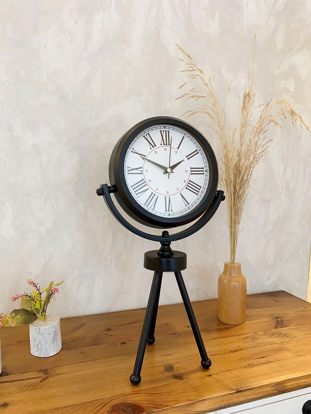 Siyah Metal Mini Tripod Modern Masa Saati 45×26 cm