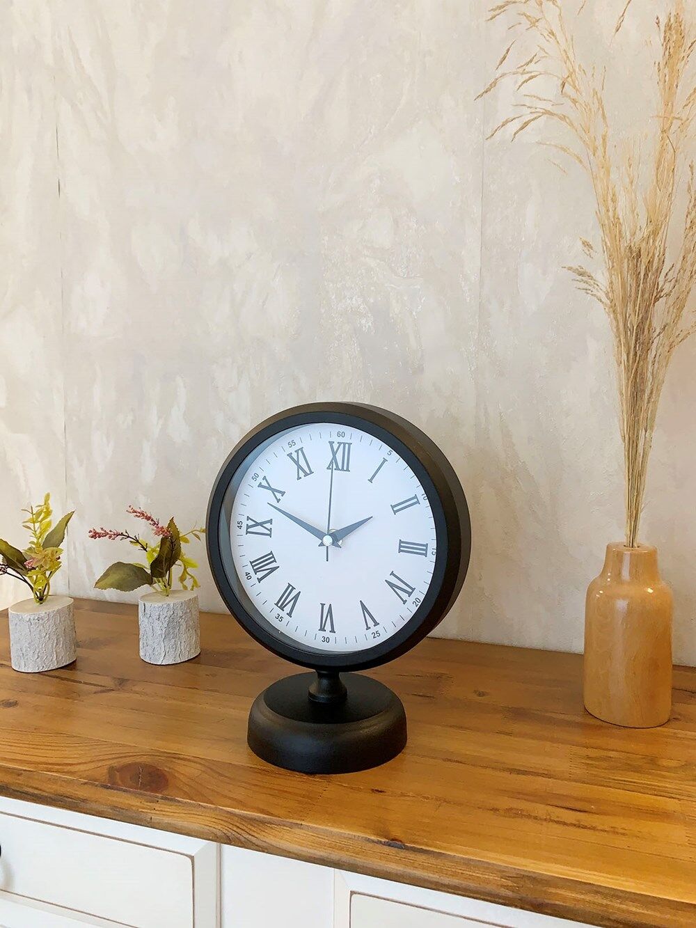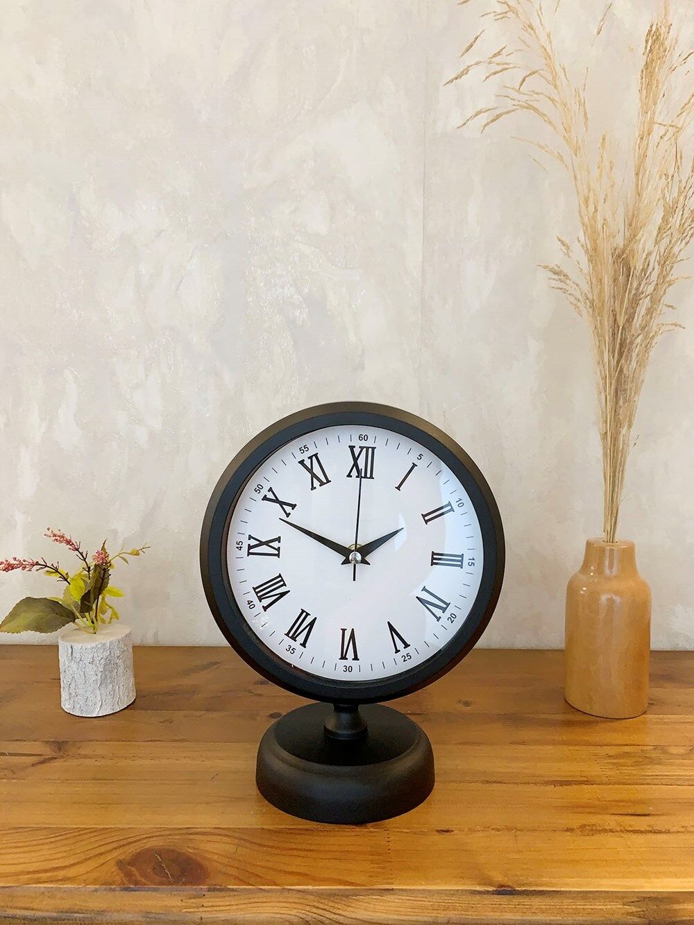 Siyah Metal Roma Rakamlı Masa Saati 25×20 cm
