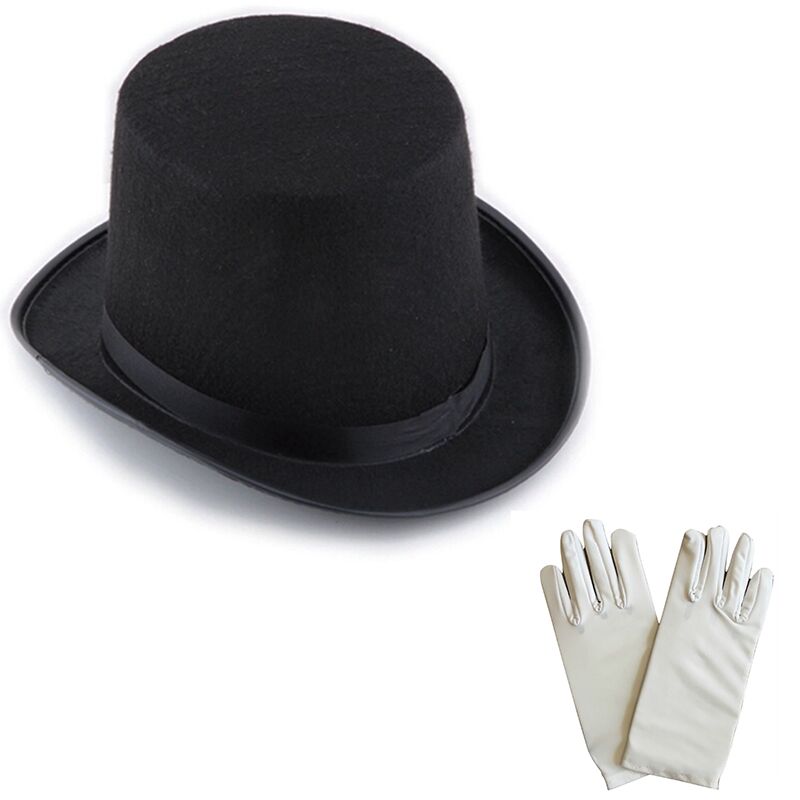 SİYAH SİHİRBAZ FÖTR ŞAPKA VE BEYAZ SİHİRBAZ ELDİVENİ SETİ – YETİŞKİN BOY