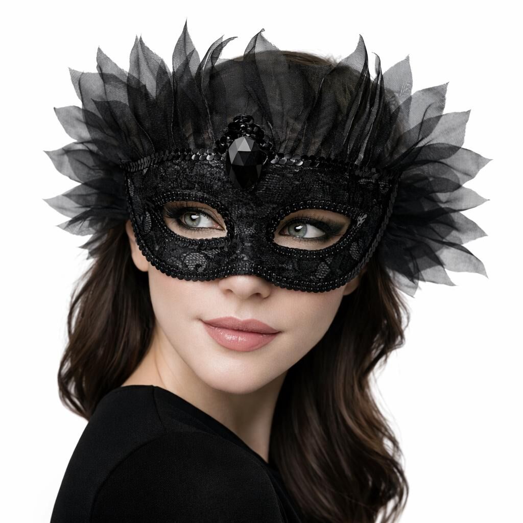 1 Adet Siyah Taşlı Venedik Lüks Tüllü Parti Maskesi