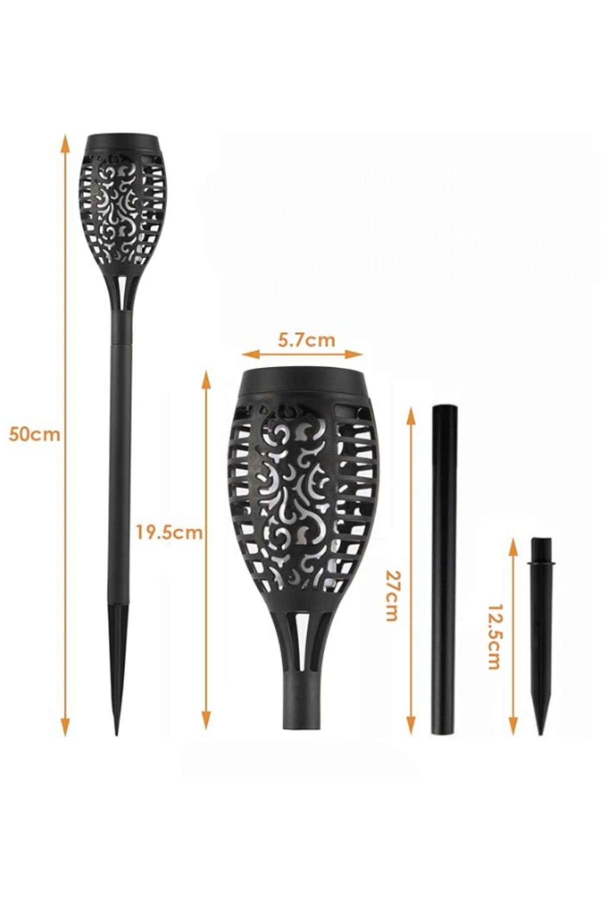 SOLAR ALEV EFEKTLİ BAHÇE LAMBASI Solar Alev Efektli Bahçe Lambası, toprağa saplanabilen altındaki kazıklar sayesinde bahçe veya açık alanlarda kullanım için idealdir. Aynı zamanda, kazıkları çıkartılarak masaüstünde ya da farklı zeminlerde de kullanılabilir. Güneş enerjisi ile çalışan bu lamba, çevre dostu bir seçenek sunarken alev efektiyle atmosferi güzelleştirir. Pratik tasarımı ve çok yönlü kullanımıyla dikkat çeker.Lamba, güneş panelleri aracılığıyla enerji toplar ve bu enerjiyi geceleyin otomatik olarak açılan LED lambalara dönüştürerek bahçenize sıcak ve davetkâr bir atmosfer katar. Dayanıklı malzemelerden üretilmiş olan lamba, dış hava koşullarına karşı dirençlidir. Hem değişik zeminlere uyum sağlayabilmesi hem de çevre dostu enerji kullanımıyla, kullanıcıya pratik ve estetik bir aydınlatma çözümü sunar.Paket İçeriği1 adet solar alev efektli bahçe lambası