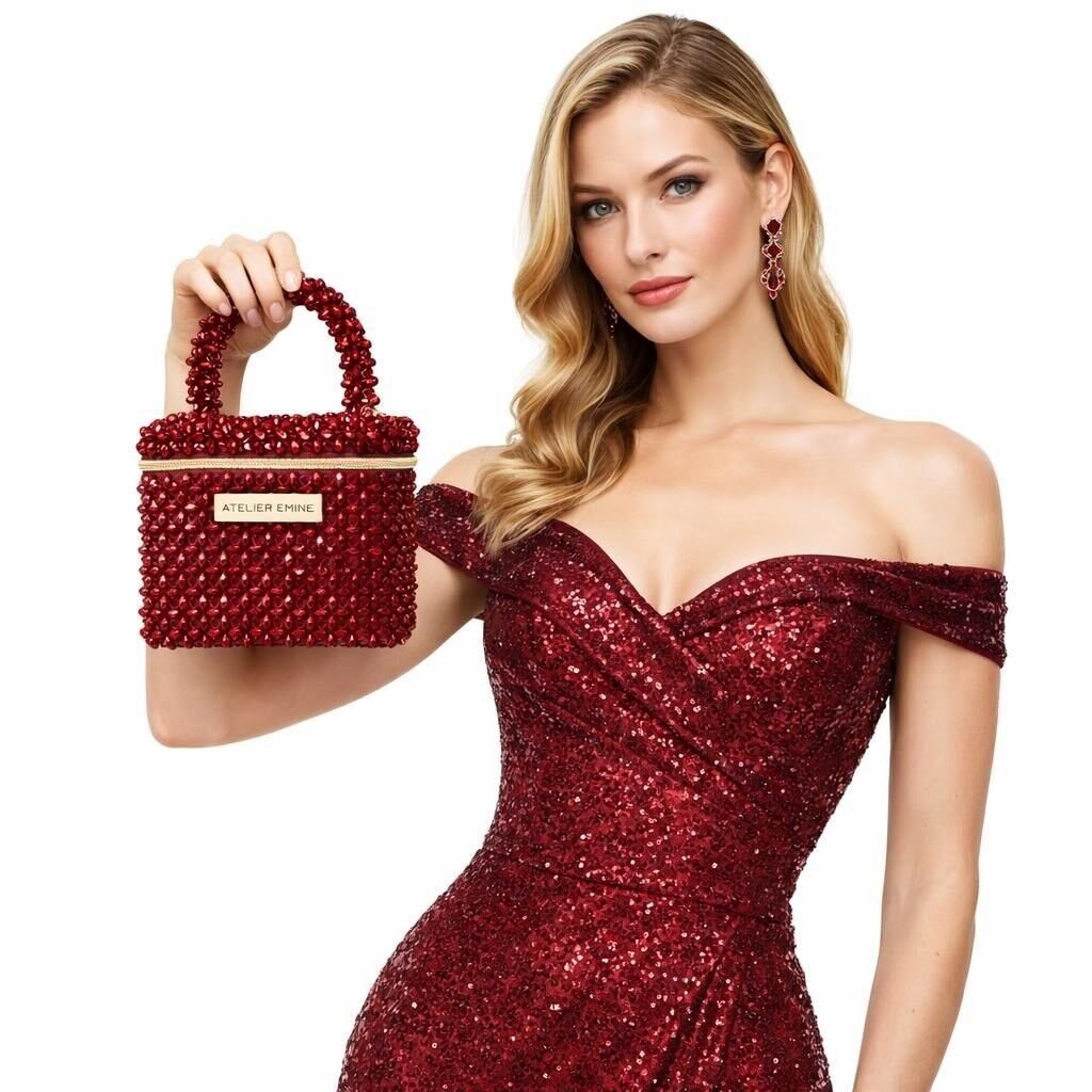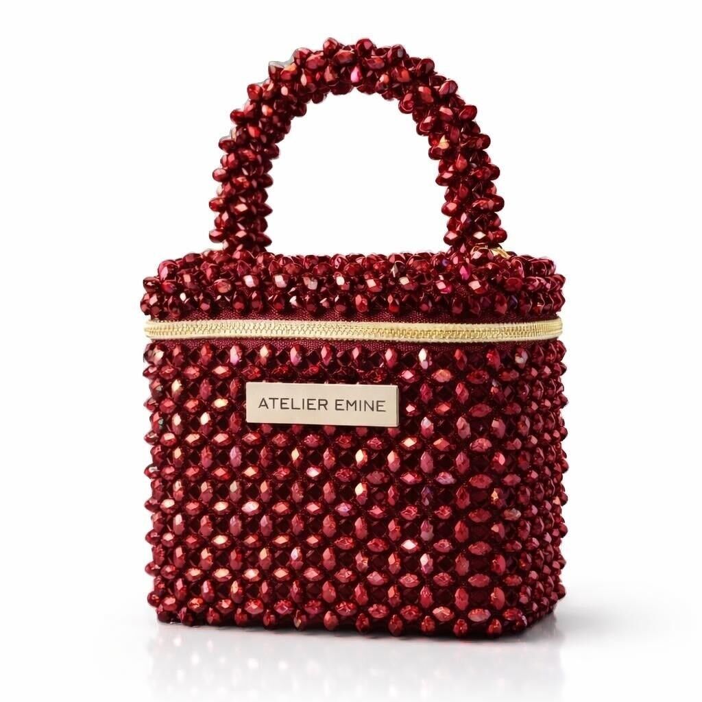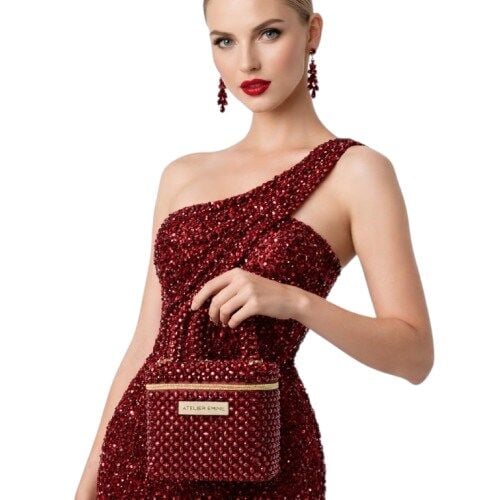 Atelier Emine’in Crystal Gelato Couture serisine ait bu tasarım; 8 mm optik sınıfı kristal boncuklar kullanılarak, tamamen el işçiliğiyle üretilmiş box formda premium mini çanta modelidir.