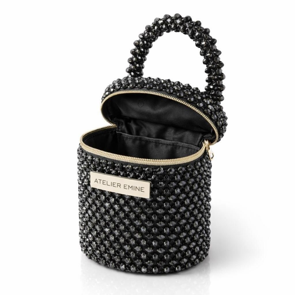 Atelier Emine’in Crystal Gelato Couture serisine ait Sorbetto Obscura, 8 mm optik sınıfı kristal boncukların yüksek dayanımlı misina ile örülmesiyle tamamen el işçiliğiyle üretilmiş, mimari netlikte formu olan premium mini çanta modelidir.