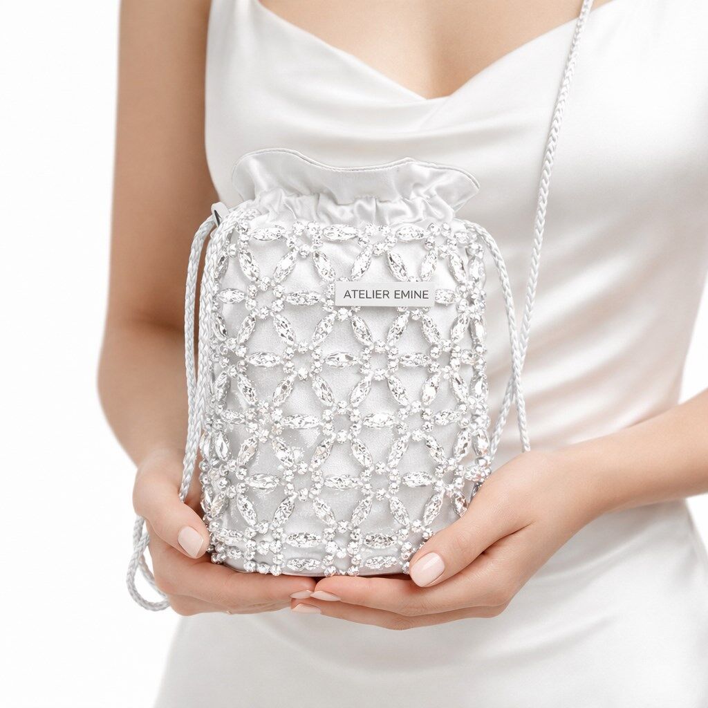 Premium El Yapımı Kristal Drawstring Mini Bag