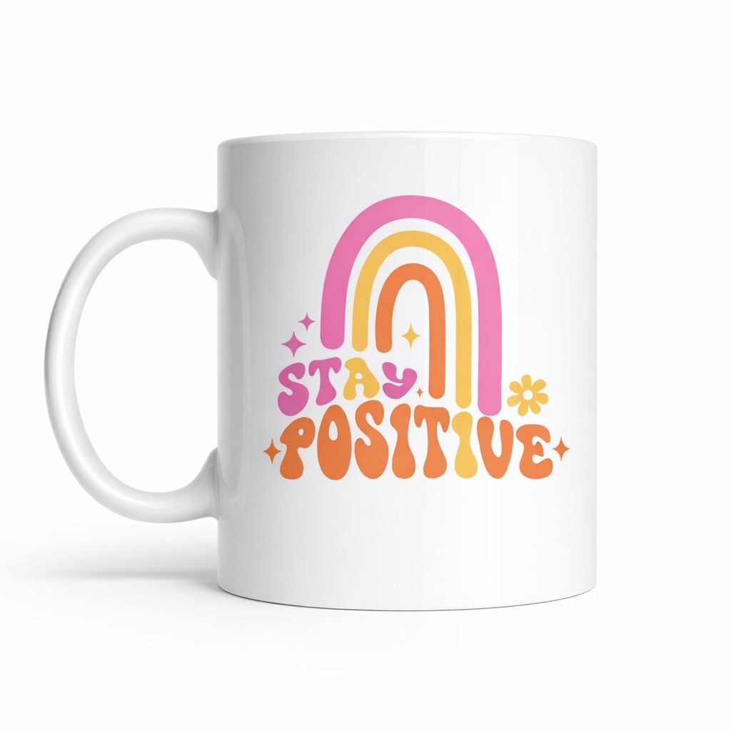 Stay Positive Tasarımlı Porselen Kupa MODEL 144 – Renkli Gökkuşağı Desenli, Motivasyon Veren Kahve & Çay Kupası – Hediyelik Kupa