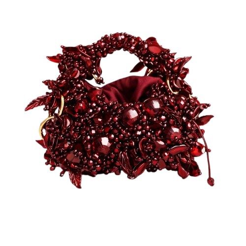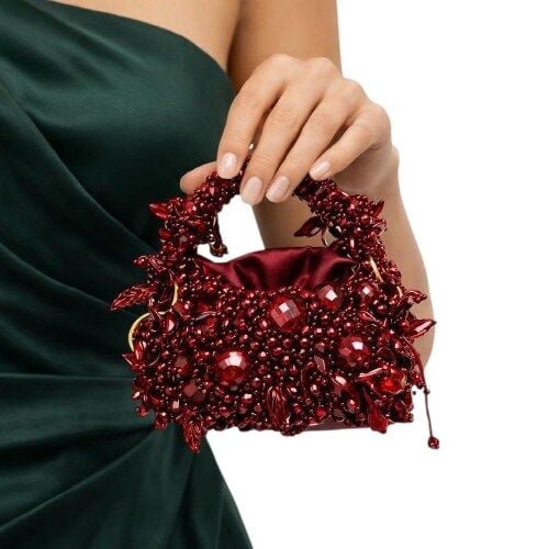 Atelier Emine’in Crystal Gelato Couture serisine ait Stracci Paprika, çok katmanlı kristal yüzey kurgusu ve heykelsi hobo formu ile tasarlanmış, tamamen el işçiliğiyle üretilmiş premium mini çanta modelidir.