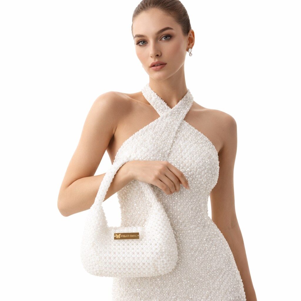 Atelier Emine’in Crystal Gelato Couture koleksiyonuna ait Stracci Vanille, 8 mm optik sınıfı kristal boncukların yüksek dayanımlı misina ile tek tek örülmesiyle tamamen el işçiliğiyle üretilmiş, yumuşak geçişli ve dengeli hacme sahip premium mini çanta modelidir.