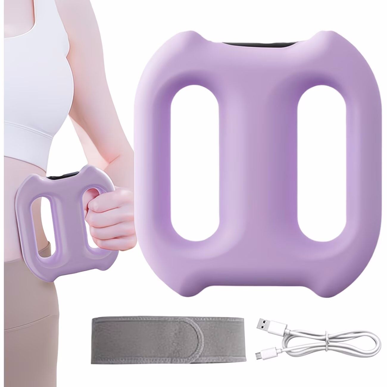 Taşınabilir Şarjlı Titreşimli Masaj Kemeri - Karın Bel için Çift Halkalı Zayıflatıcı Fasya Masaj Cihazı