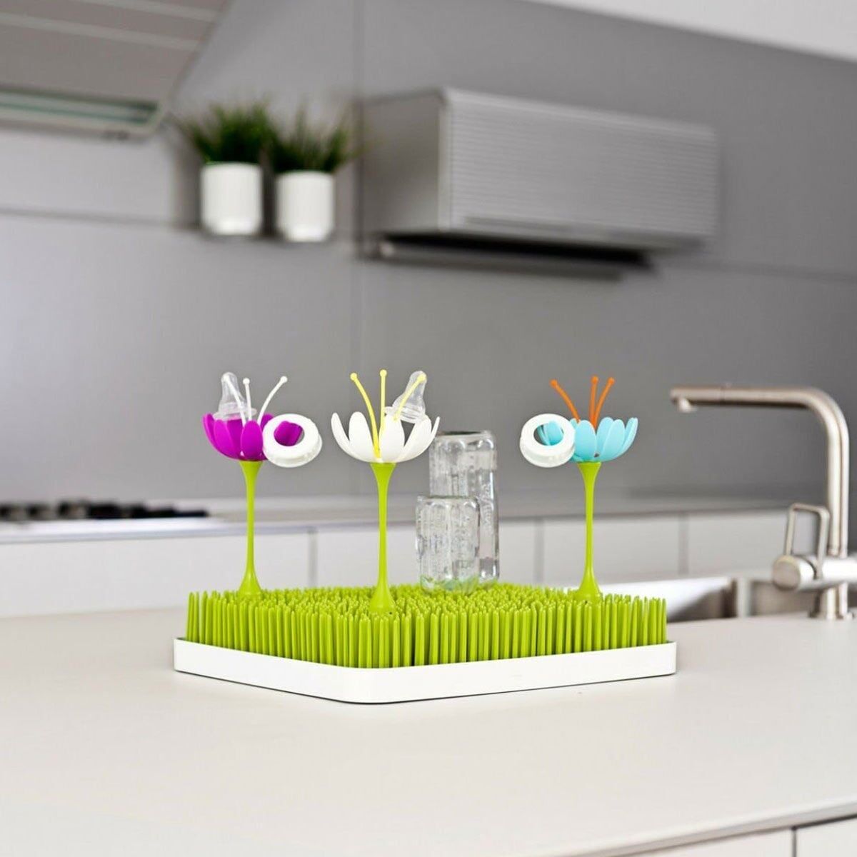 Biberon, suluk, emzik gibi havadar bir şekilde kurutulmak istenen eşyalar için dikey kurutma imkanı sunan pratik bir kurutma ünitesidir.