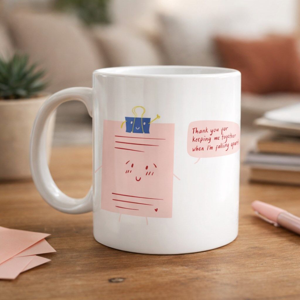 Üzerindeki sevimli not figürü ve “Thank you for keeping me together when I’m falling apart” yazısı;
