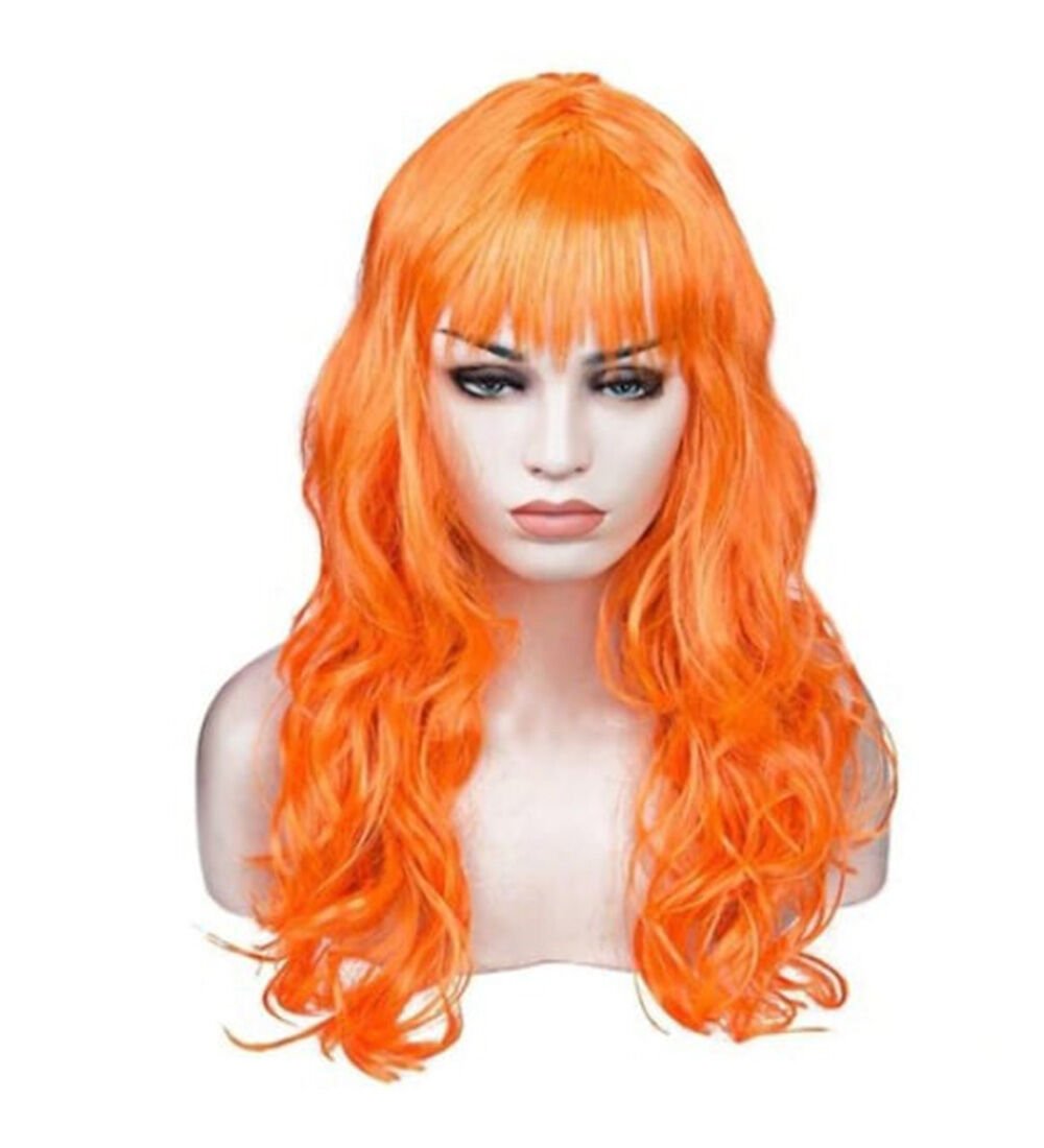 1 Adet Turuncu Renk Astarlı Dalgalı Kesim Parti Peruğu