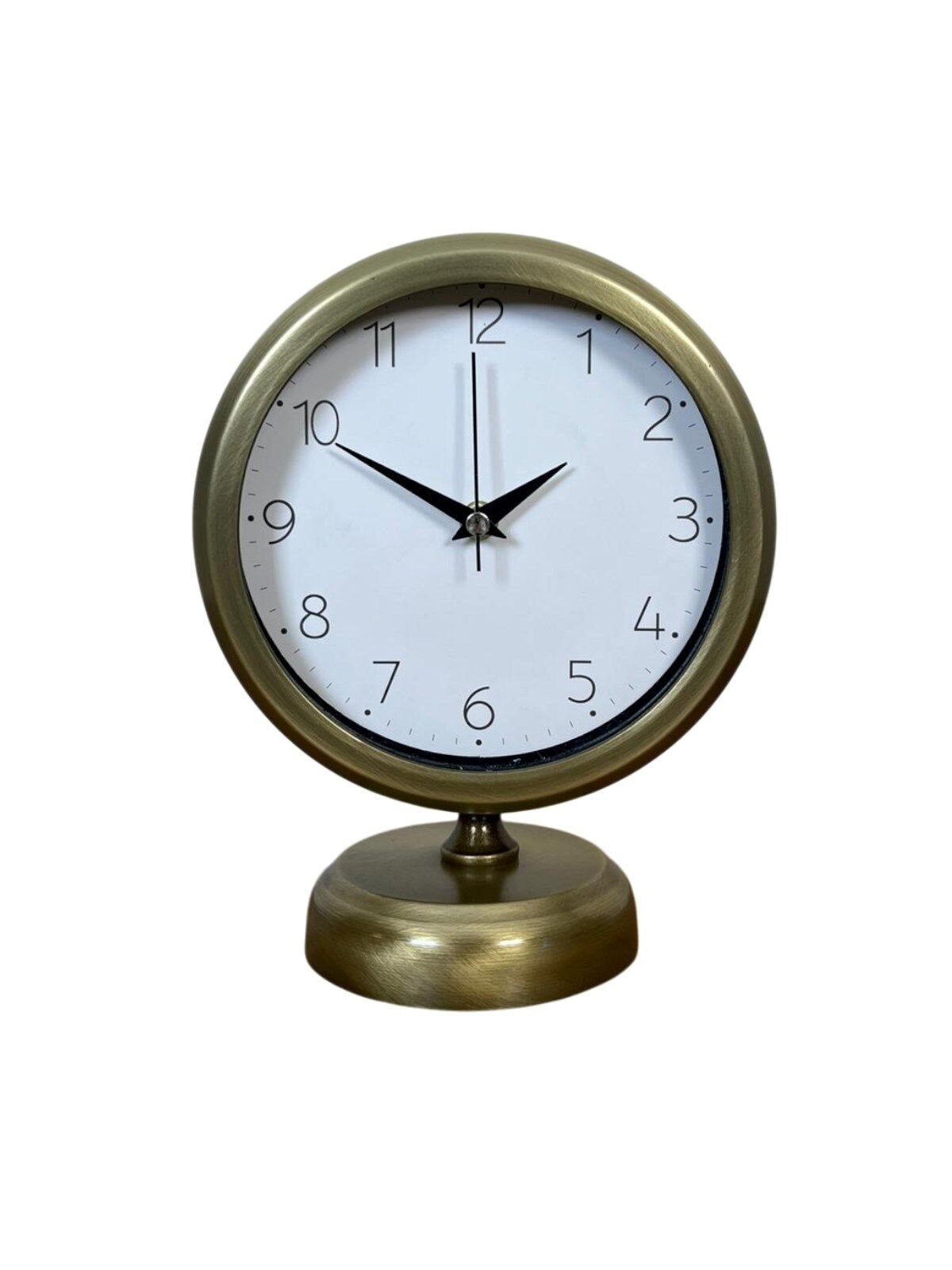 Zamansız tasarımı ve eskitme metal dokusuyla öne çıkan bu vintage masa saati, bulunduğu ortama klasik bir şıklık ve karakter katar. Hem dekoratif hem de işlevsel yapısıyla; salon, çalışma masası, ofis, kitaplık, konsol veya vitrin üzerinde estetik bir tamamlayıcı olarak kullanılabilir.