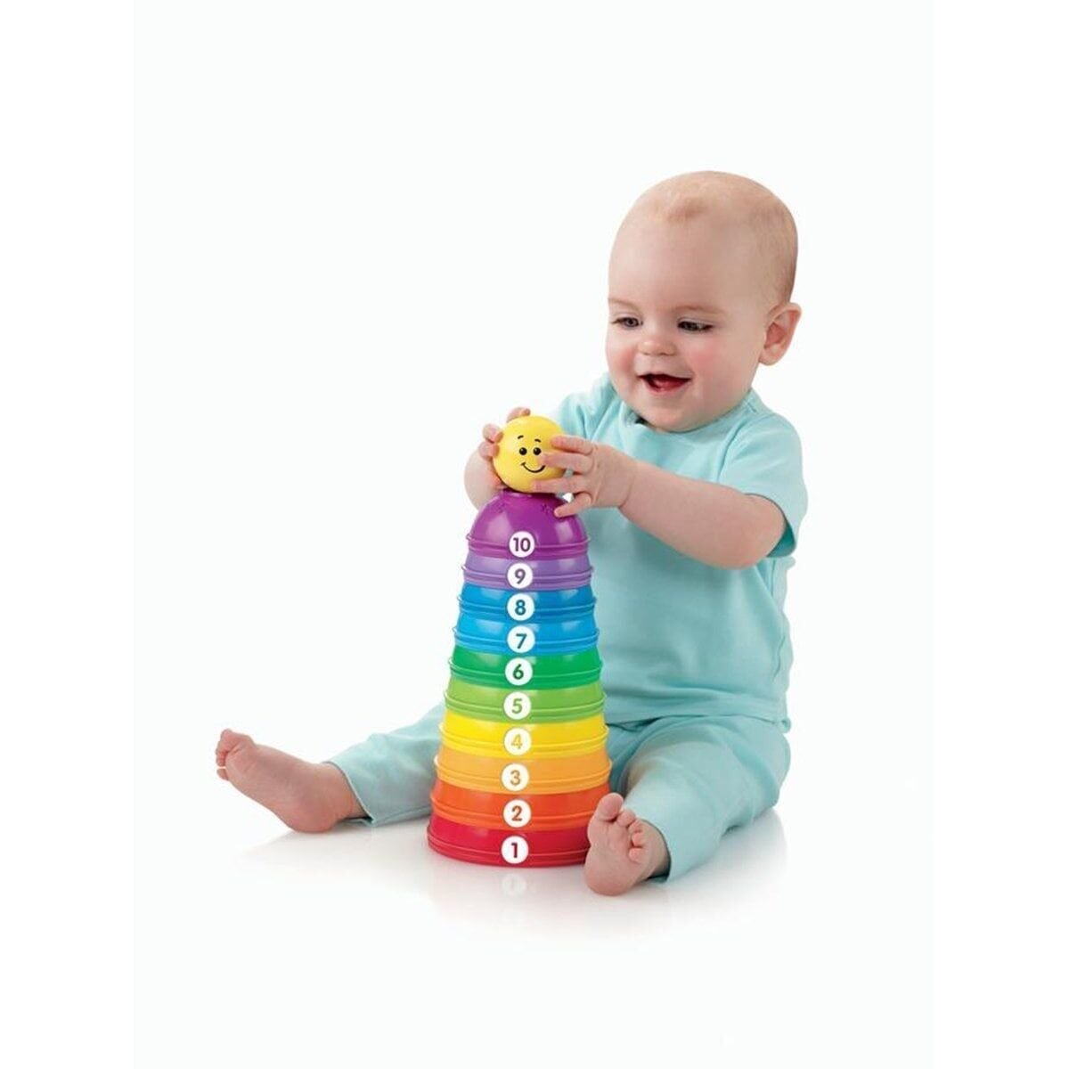 Bebeğiniz numaralı renkli kapları iç içe geçirmeye, üst üste dizmeye veya birleştirip renkli topları yuvarlamaya bayılacak! Üstelik tüm kapların içine veya üst üste dizilen kapların en tepesine koyabileceği gülümseyen bir çıngıraklı top da var. Kapları üst üste dizmek, iç içe geçirmek veya birleştirmek, bebeğinizin boyutları, şekilleri ve nesnelerin birbirine nasıl uyum sağladığını eğlenceli bir şekilde öğrenmesini sağlar!