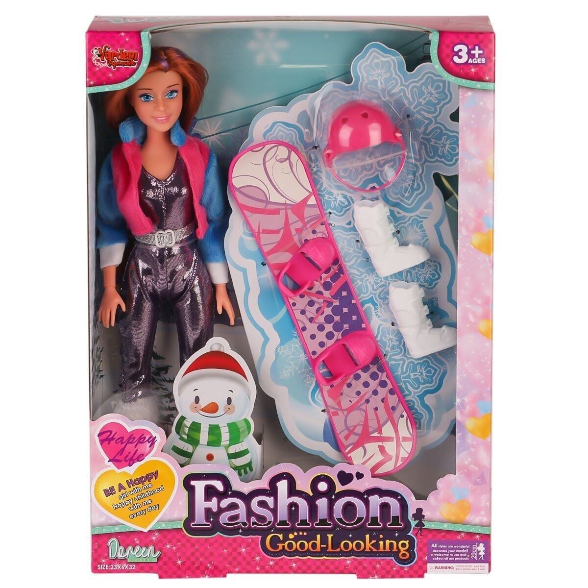 Çocukların oyunlarını keyifli hale getirecek kutulu 29 cm Aksesuarlı Kayakçı bebek seti.