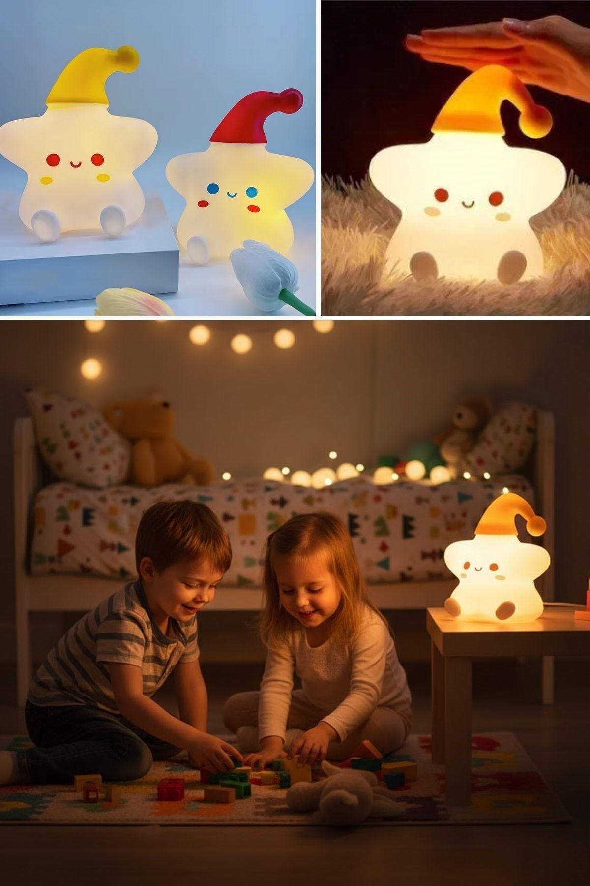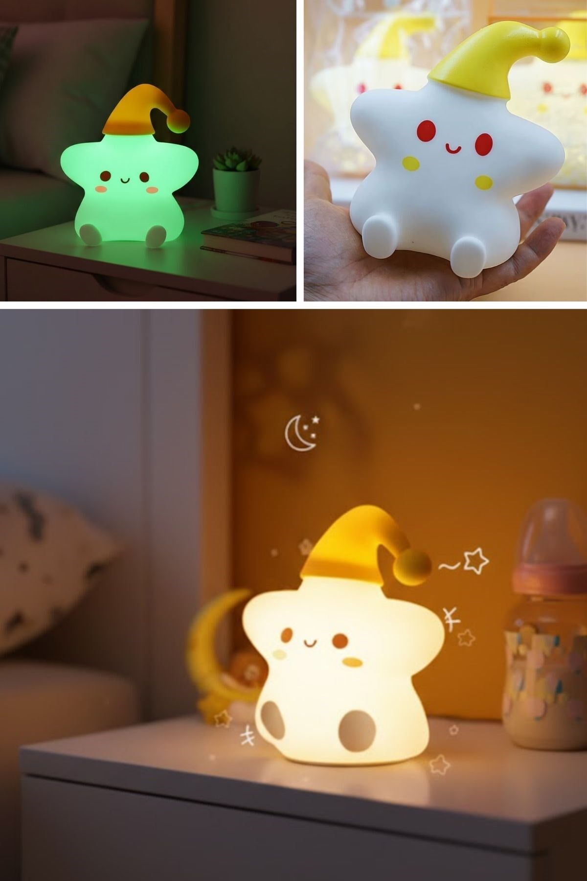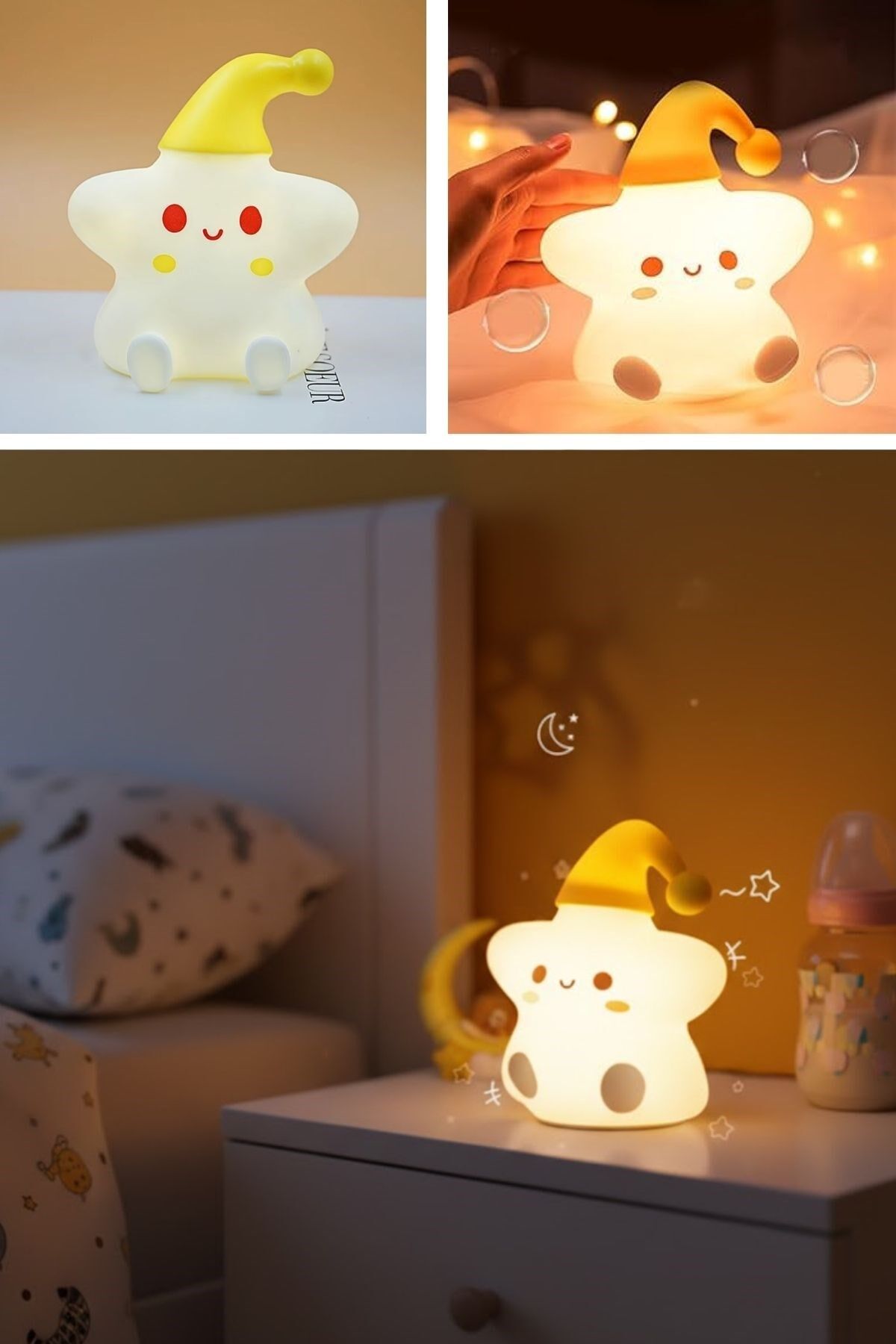 Yıldız Figürlü Pofuduk LED Gece Lambası – Yumuşak Dokulu Masaüstü Aydınlatma, Çocuk Odası ve Dekoratif Şarjlı Ortam Işığı