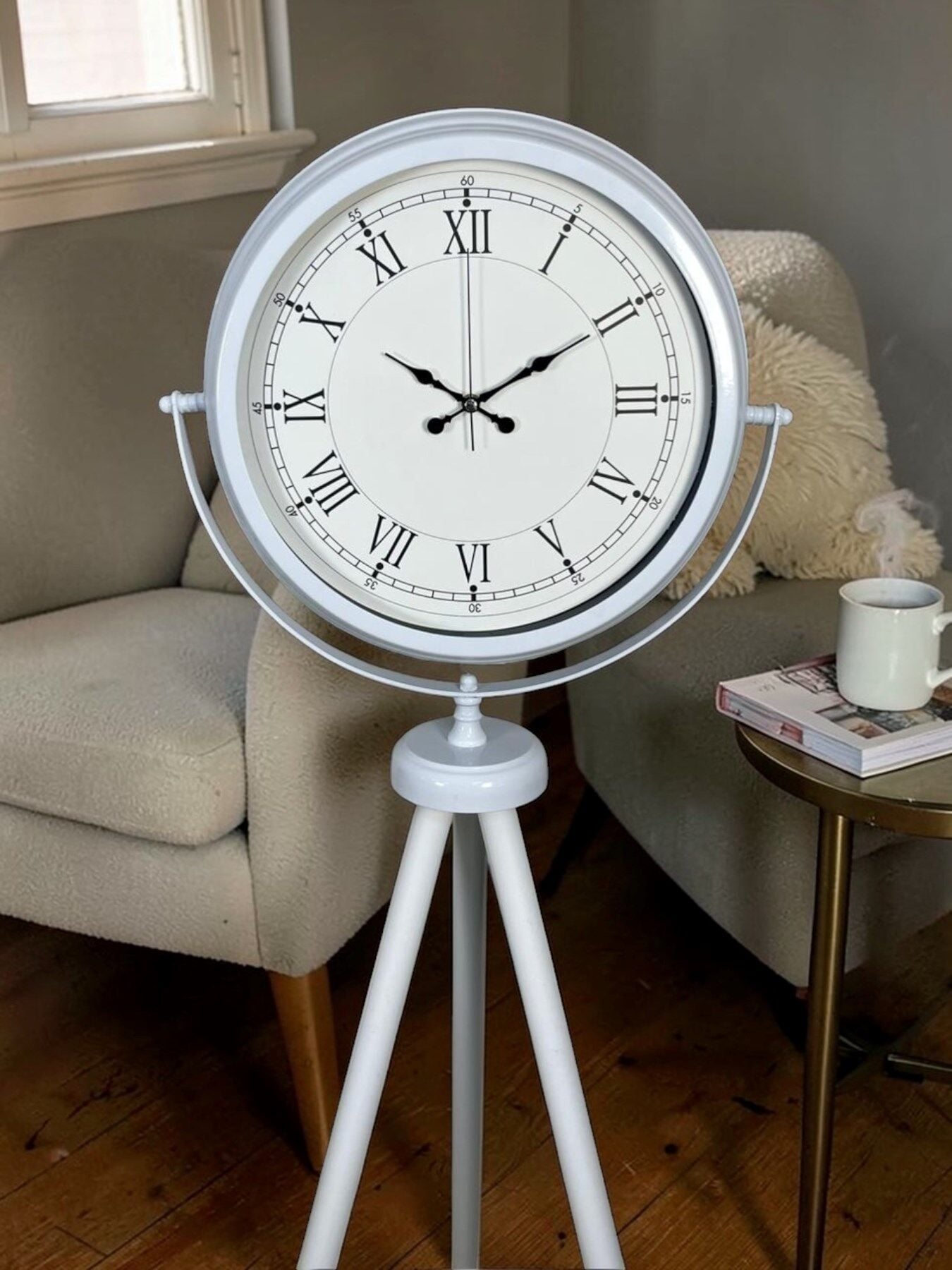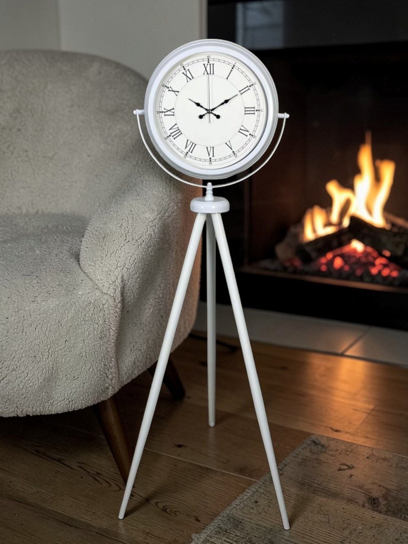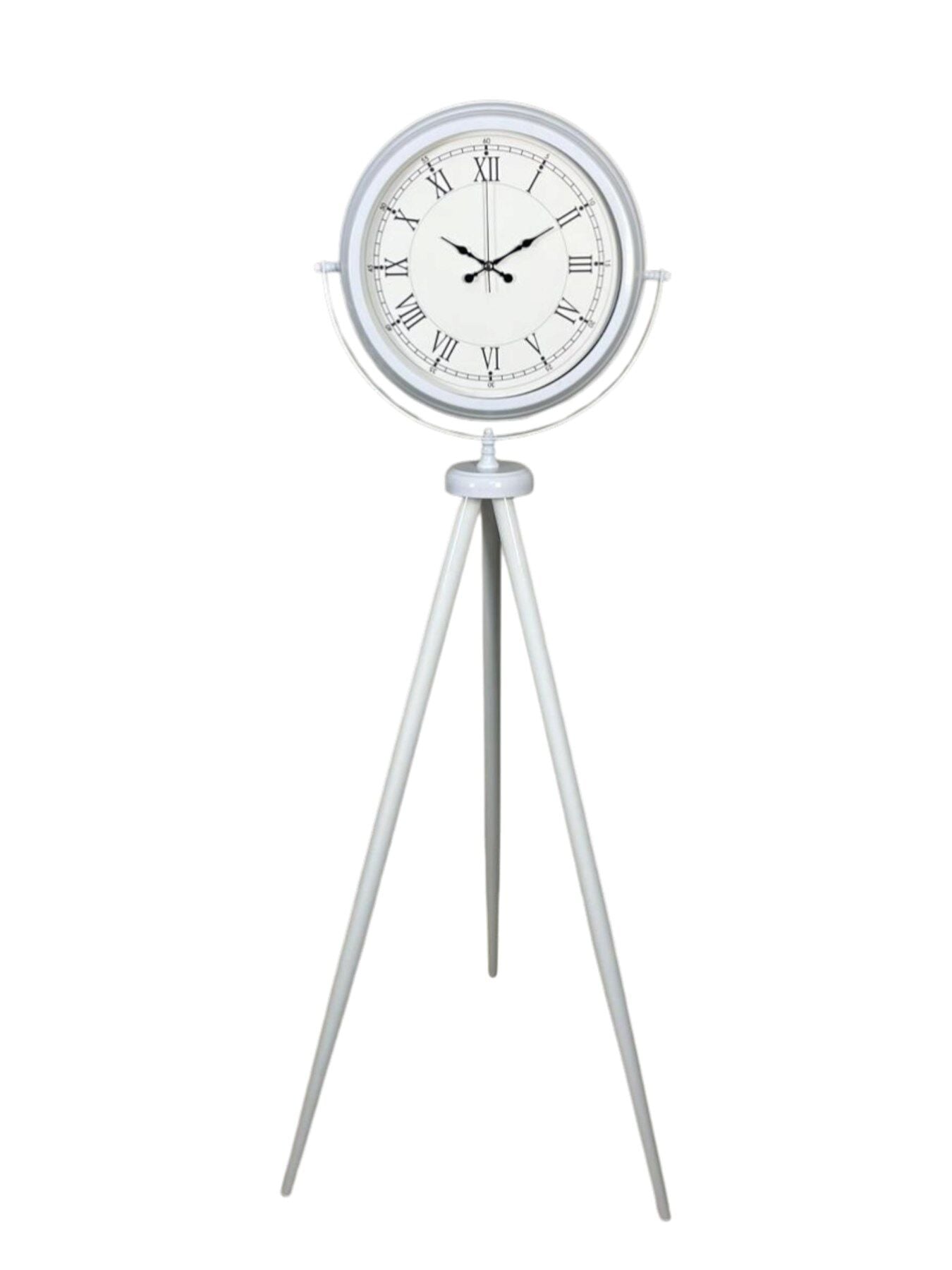 Zarif ve minimal tasarımıyla dikkat çeken 150 x 45 cm beyaz ayaklı saat, ince Roma rakamlı kadranı ile bulunduğu ortama modern bir klasik dokunuş kazandırır. Sade ve dengeli tasarım çizgileri sayesinde hem modern hem klasik dekorasyonlarla kusursuz uyum sağlar.
